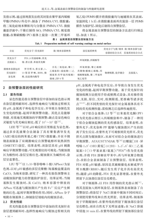 Tab.1 Pre p arationmethodsofselfwarnin g coatin g sonmetalsurface