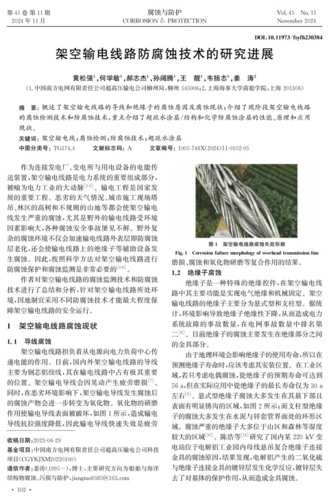 关键词:架空输电线; 腐蚀检测; 防腐蚀技术; 超疏水涂层