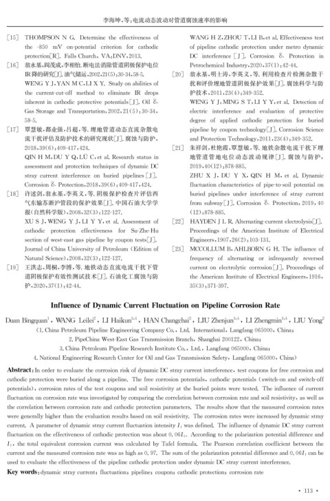 [ 17 ] 覃慧敏, 都业强, 吕超, 等. 埋地管道动态直流杂散电 p i p elineb ycou p ontechnolo gy [ J ] .CorrosionScience