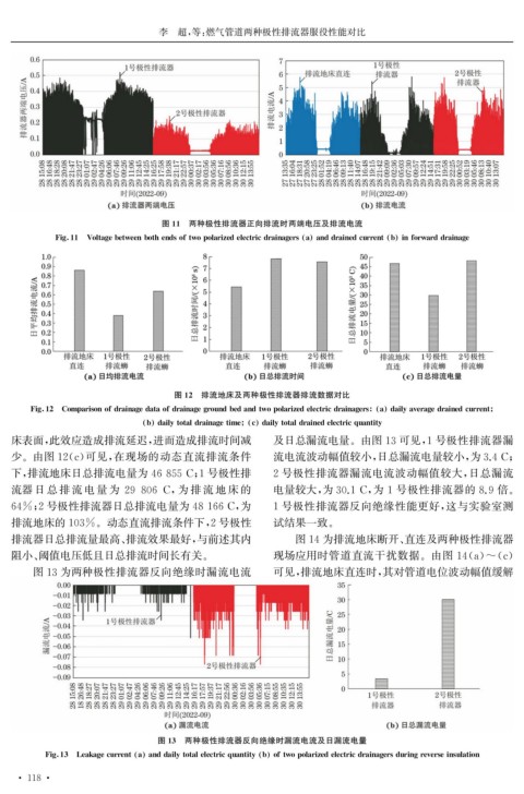 排流器日总排流量最高、 排流效果最好, 与前述其内 图14为排流地床断开、 直连及两种极性排流器