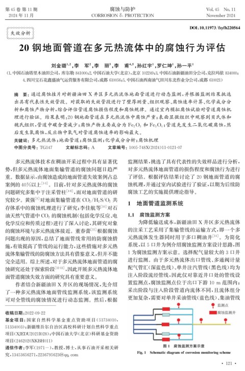 案例的40%以上 [ 1-3 ] 。目前, 针对多元热流体的腐蚀 蚀机理, 并通过室内试验进行了验证, 以期为后续防