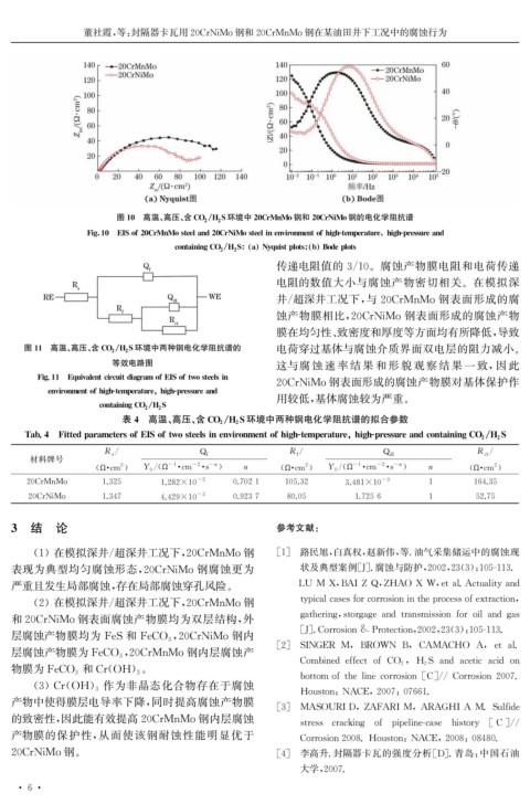 表4 高温、 高压、 含 CO 2 H 2 S环境中两种钢电化学阻抗谱的拟合参数