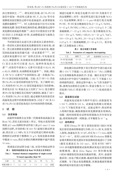 的主要原因之一 [ 24 ] 。研究者们发现, 在( Ni , Pt ) Al 别进行电镀 Pt和复合电镀 Pt-Hf ( Hf为纳米尺寸