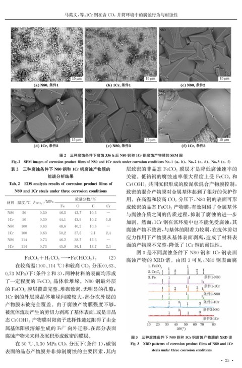N80and1Crsteelsunderthreecorrosionconditions 致密的混合产物膜对金属基体起到了很好的保护作
