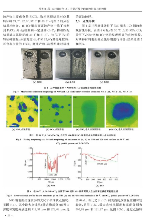 到 FeCO 3 外, 还检测到一定量的 Cr 7 C 3 观腐蚀形貌。由图4可见, 在50℃ 、 0.30MPaCO 2