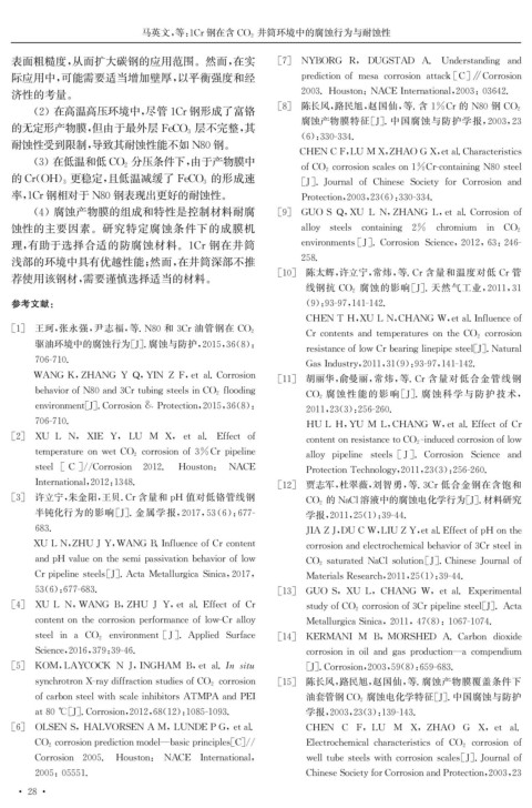 率, 1Cr 钢相对于 N80钢表现出更好的耐蚀性。 Protection , 2003 , 23 ( 6 ): 330-334.