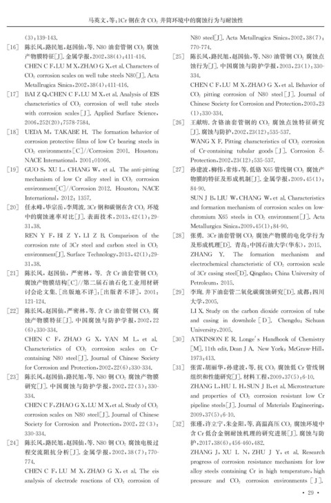 [ 17 ] BAIZQ , CHENCF , LU M X , etal.Anal y sisofEIS CO 2 p ittin gcorrosionofN80steel [ J ] .Journalof