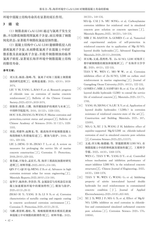 氯离子浓度, 显著延长海洋环境中钢筋混凝土结构 [ 8 ] 田玉琬, 文成, 莫湾湾, 等.Zn-Al-NO 2 LDH 对海洋工