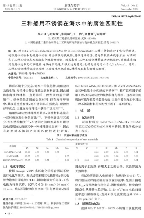 及微生物, 海浪冲击都会导致金属材料腐蚀, 因此耐 是三种性能十分优越的不锈钢 [ 12 ] , 被广泛应用于船