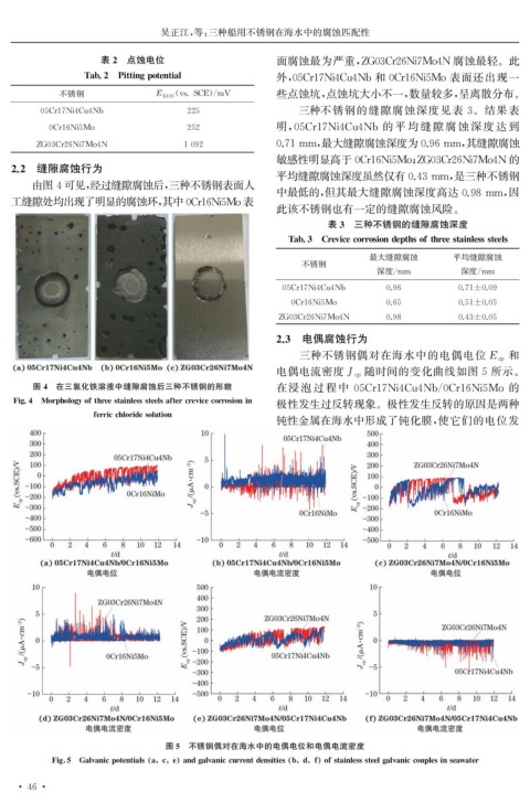 吴正江, 等: 三种船用不锈钢在海水中的腐蚀匹配性