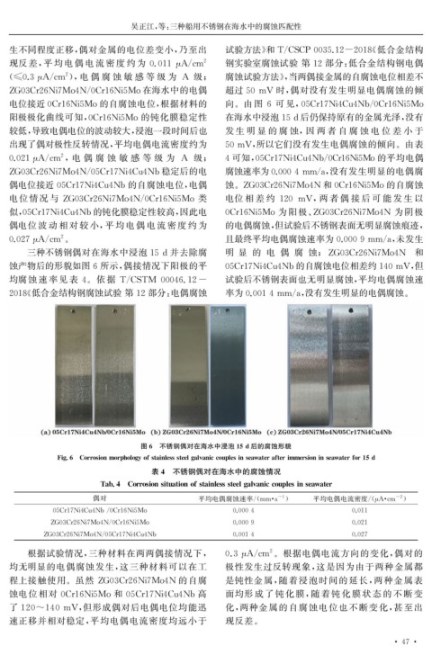 Tab.4 Corrosionsituationofstainlesssteel g alvaniccou p lesinseawater
