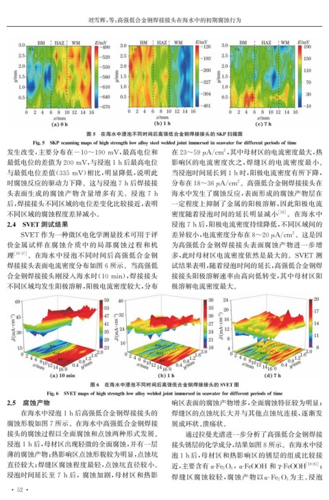 理 [ 16-17 ] 。在海水中浸泡不同时间后高强低合金钢 多, 此时母材区电流密度依然是最大的。 SVET 测