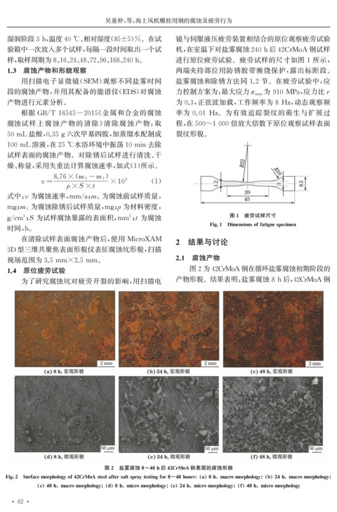 1.4 原位疲劳试验 图2为42CrMoA 钢在循环盐雾腐蚀初期阶段的