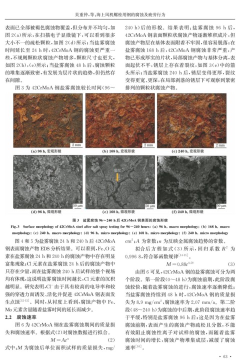 图3为 42CrMoA 钢盐雾腐蚀较长时间( 96~ 排列的颗粒状腐蚀产物。