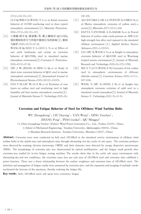 吴重仲, 等: 海上风机螺栓用钢的腐蚀及疲劳行为