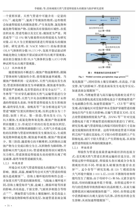 了管体材料与腐蚀性介质, 使得腐蚀速率减慢。当 Fi g .1 Weldedcorrosion p reci p itationsta g e p rocess [ 12 ]