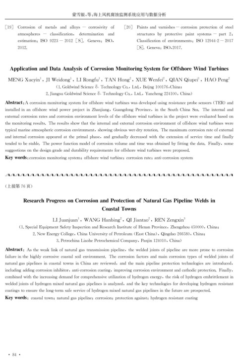 themonitorin g results.Theresultsshowthattheinternalandexternalcorrosionenvironmentofoffshorewindturbineswere